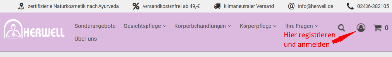 1. Registrieren Sie sich im Online-Shop, bevor Sie die erste Bestellung tätigen.